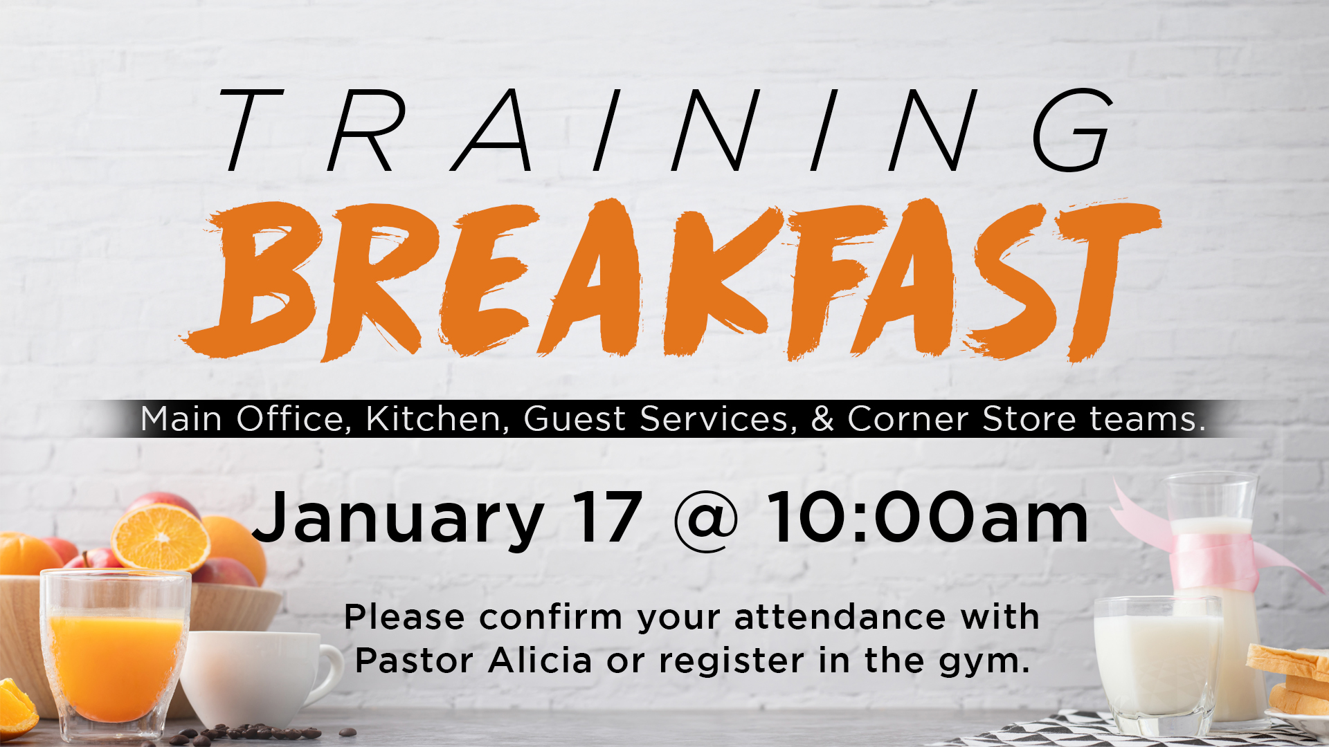 10:00am – Hospitality Team Training Breakfast