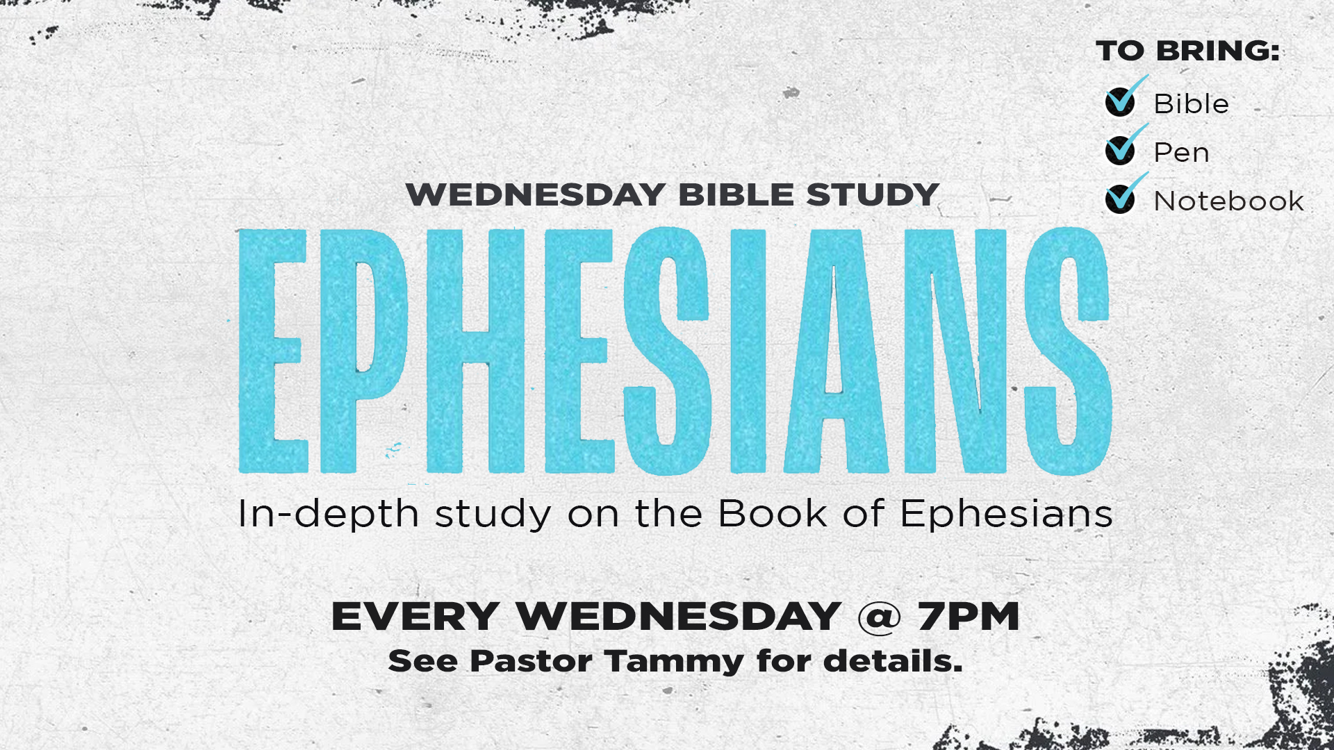 7:00pm – Bible Study: Ephesians